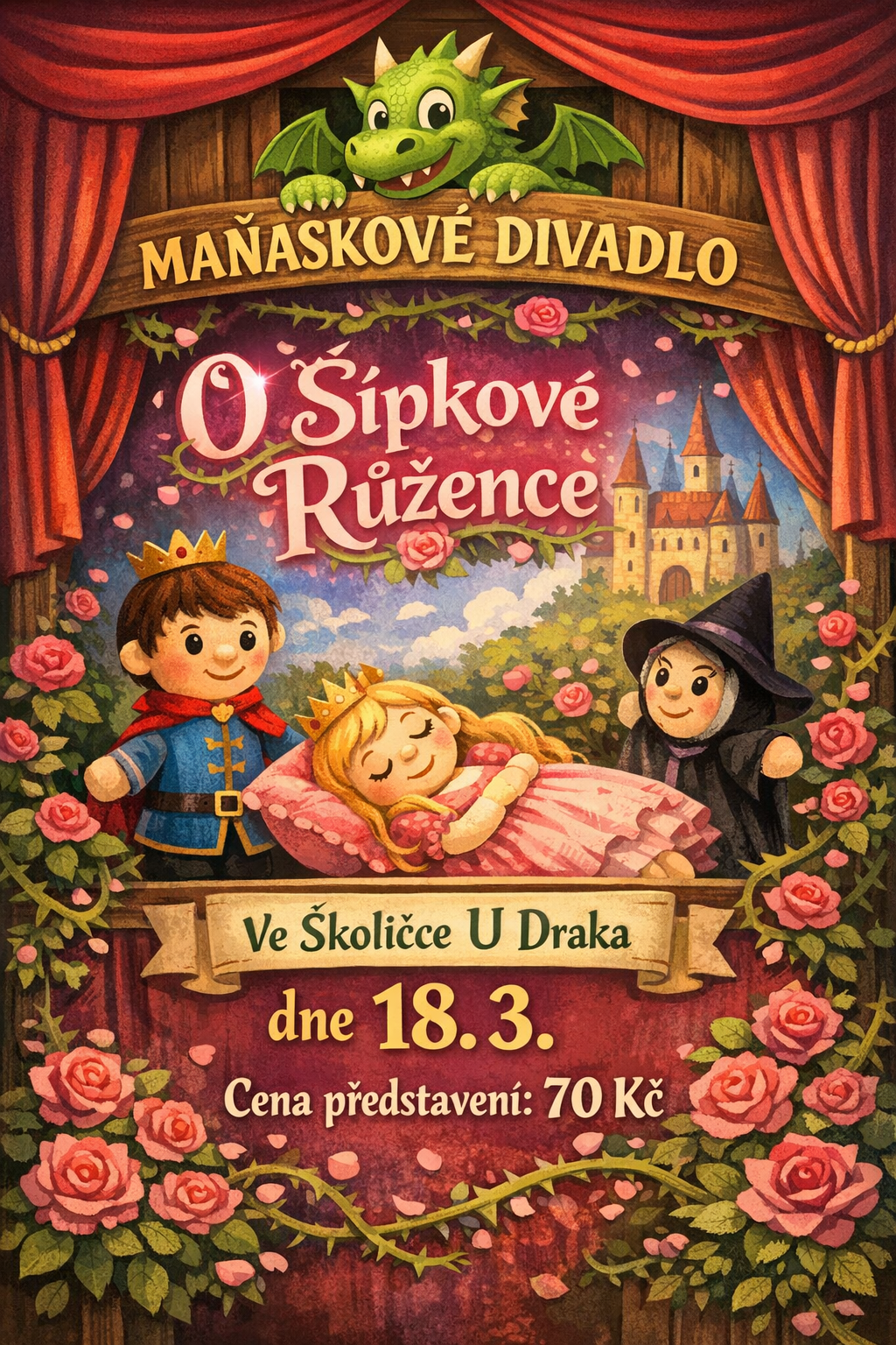 Read MoreMilí rodiče, ve středu 18. 3. děti na školce čeká premiéra maňáskového divadla „O Šípkové Růžence“. Tento den děti přiveďte nejpozději do 8:45 hod. Na tuto akci vybíráme 70 Kč.