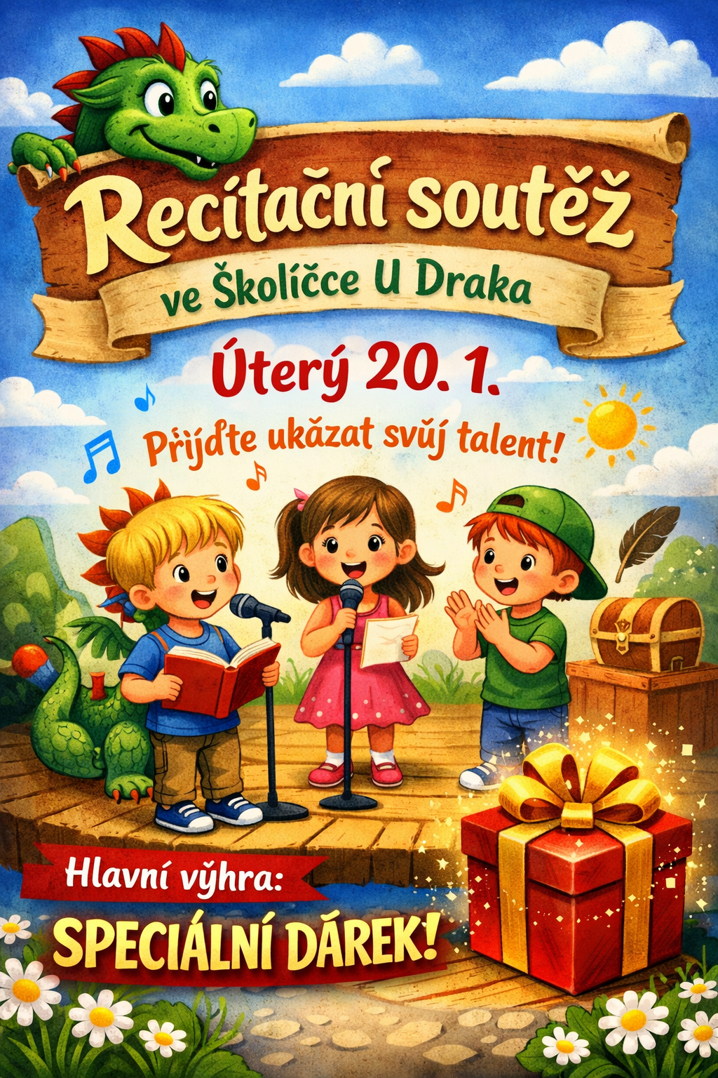 Read MoreVážení rodiče, máme pro děti vyhlášenou recitační soutěž, která je tak trochu i domácím úkolem pro Vás. Do úterý 20.1. si děti mají připravit jakoukoliv básničku (nejlépe takovou, kterou ještě neznáme) a odrecitovat ji před porotou = tety.:) každý účastník od nás dostane za odvahu malý dárek a nejlepší recitující dostane speciální výhru.:) Těšíme se.